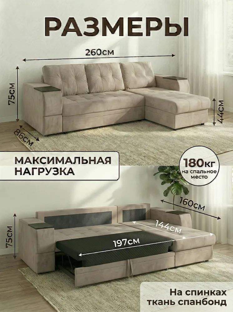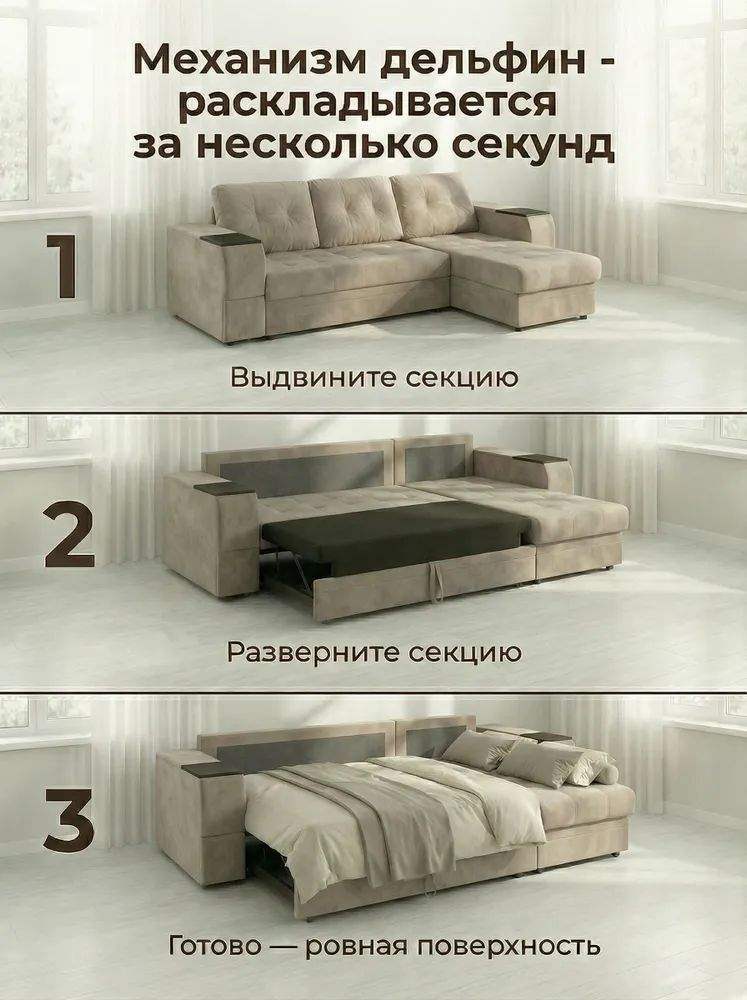Механизм трансформации: дельфин. Спальное место, мм: 1970х1440.