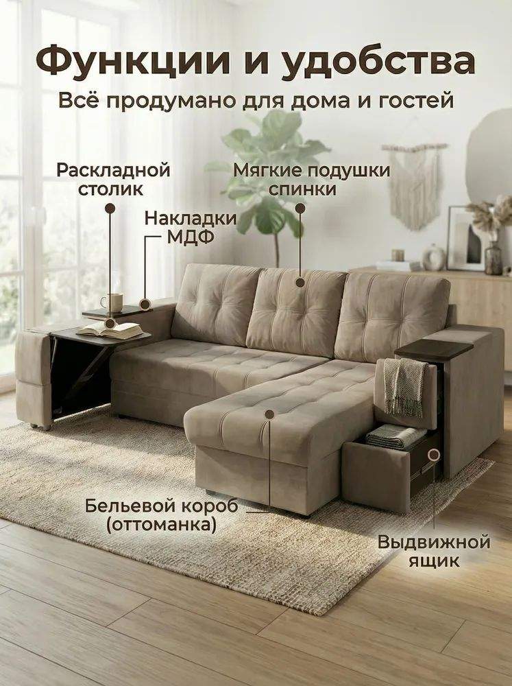 Диван угловой Атлант Бар со столиком какао